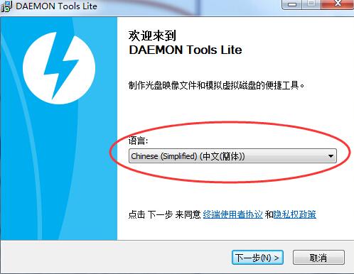 1、下载完毕后,双击DTLite.exe文件开始安装。选择简体中文,点击下一步。