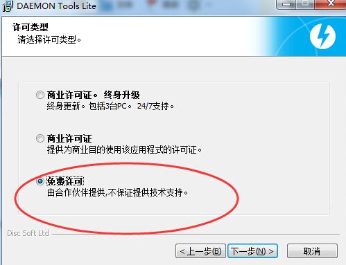 2、选择免费许可选项,点击下一步。