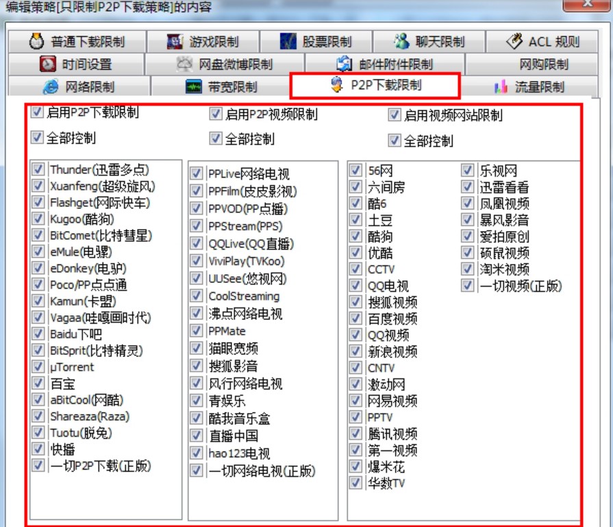 5、限制网络、屏蔽视频网站、限制公司员工网购、禁止一键式购物网站、禁止P2P视频、禁止上班网购等功能。