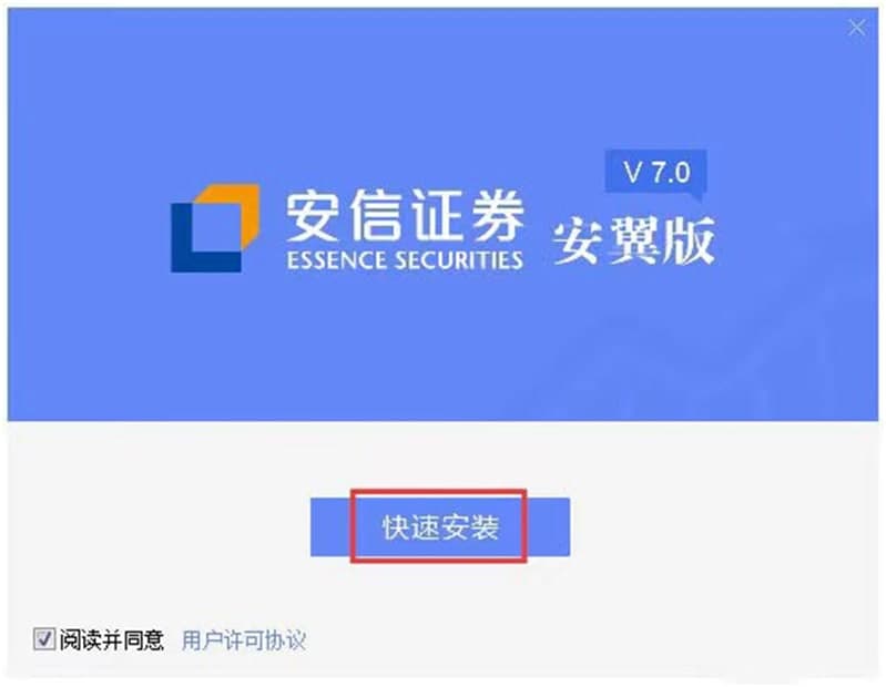 2. 在该软件的安装主页面中,我们需要对该软件的许可协议进行阅览和同意,随后选择软件的安装方式。在该页面中点击“快速安装”,软件就能够根据默认的安装设置,快速完成该软件的各项安装设置。
