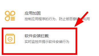 3、右侧可以找到“软件进行安装拦截”打开即可。