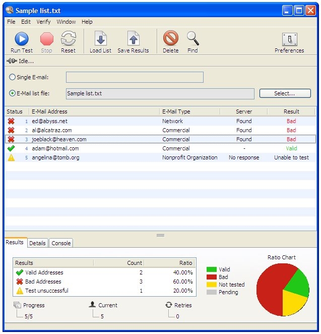 电子邮件验证程序是一款非常有效的软件,可以每秒验证10封以上的电子邮件。它可以验证单个电子邮件或大量列表。电子邮件验证程序是多线程的,可提供高速验证。
